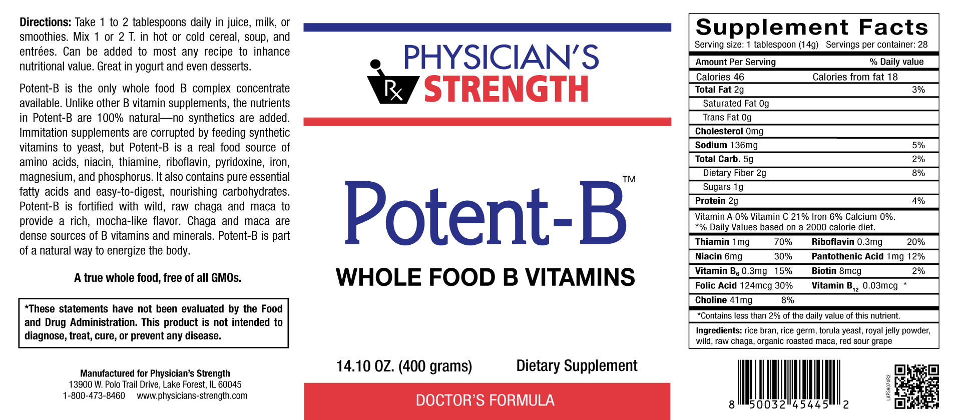 Unlike other B vitamin supplements, the nutrients in Potent-B are 100% natural—no synthetics are added.